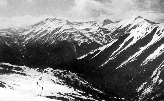 红军长征途中翻越的夹金山地势陡险,山岭连绵,重峦叠嶂,海拔4114米。