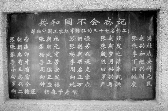 帮助中国工农红军渡江的37名船工名录纪念碑。