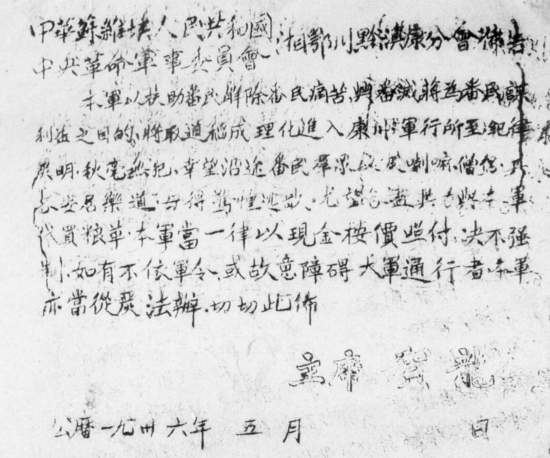 1936年5月,红2军团进军甘孜藏区,这是贺龙当年签发的布告。