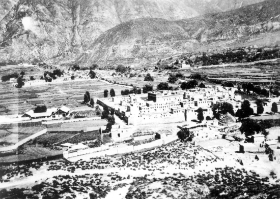 1936年6月,红2军团先头部队到达巴安党村,筹粮十分困难。红军向一位村民买了一头老牛,在开始宰杀老牛时,3名红军因饥饿而倒下了。图为1940年的巴安县城。