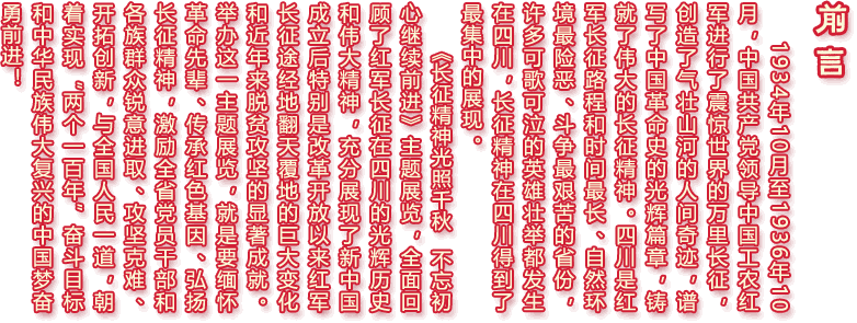 红军长征在四川的历史是整个红军长征史中浓墨重彩的一笔。四渡赤水、强渡嘉陵江、巧渡金沙江、彝海结盟、抢渡大渡河、飞夺泸定桥、翻雪山过草地等可歌可泣的英雄壮举,都发生在四川境内。党中央在四川连续召开了十多次重大会议。恶劣的自然条件和严酷的军事斗争环境,让四川成为铸就长征精神最重要的地方。四川各族人民为红军长征的胜利作出了卓越贡献,在红军长征历史上留下了辉煌篇章。