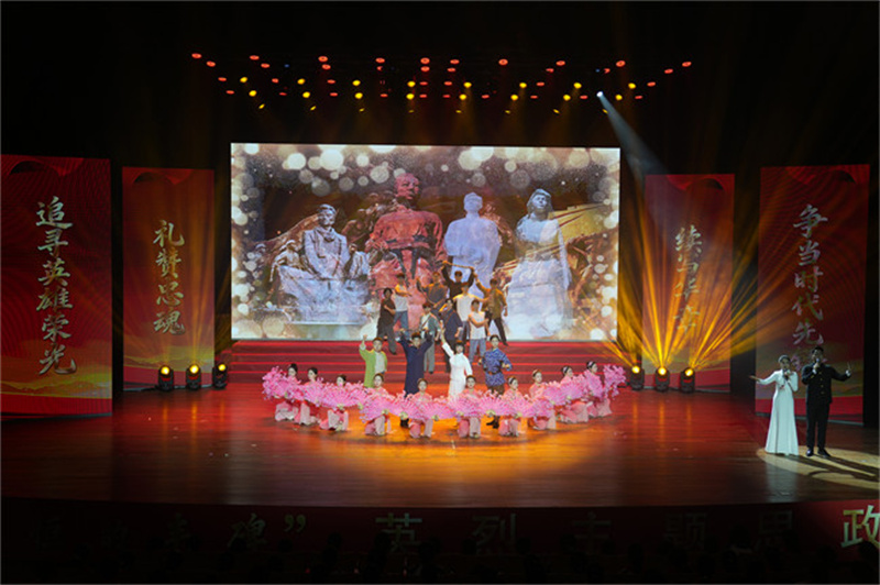 “那些为民族独立、人民解放、国家建设挺身而出、浴血奋战的英雄烈士,恰是巍巍丰碑,矗立天地之间,照亮我们前行的道路。”在群舞《胜利凯歌》中,主题思政课拉开序幕,掀开了川渝儿女用热血浇灌信仰的宏大叙事序幕,为整堂主题思政课活动奏响震撼人心的强音。