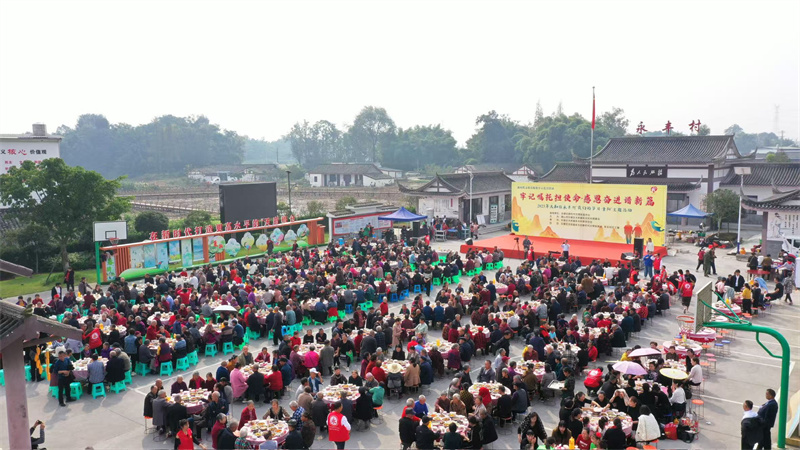 永丰村举办重阳节坝坝宴,丰富村民精神生活。(东坡区文明办供图)