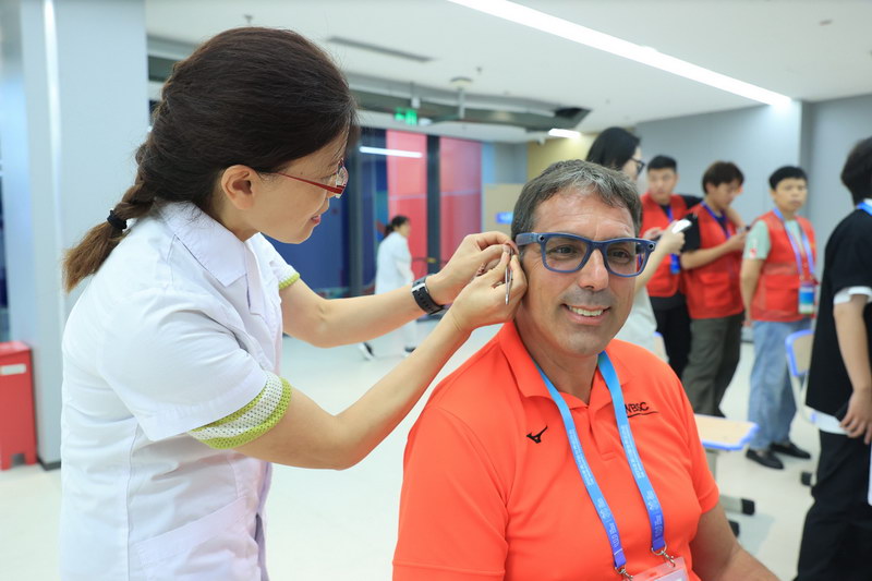 “王不留行籽”给耳朵点穴 世运会外国运动员体验中医“神奇”