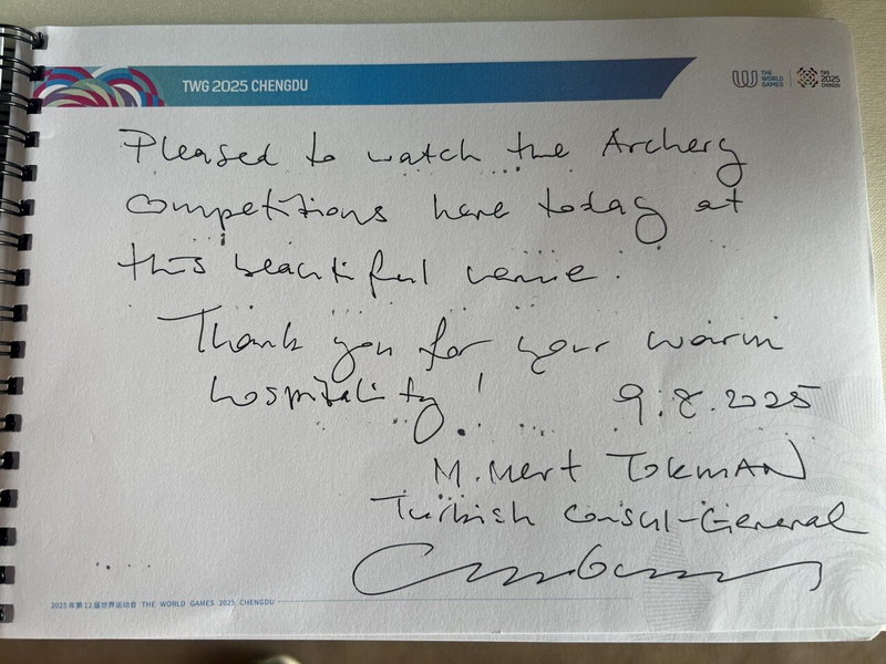 “很高兴今天能在这个美丽的场馆观看射箭比赛,感谢你们的热情款待!”——土耳其驻成都总领事馆 M.Mert Tokman总领事