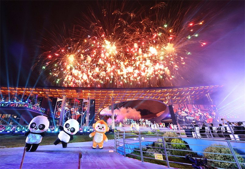 这是8月17日拍摄的闭幕式上的焰火表演。当日,第12届世界运动会闭幕式在成都举行。新华社记者 王翔 摄