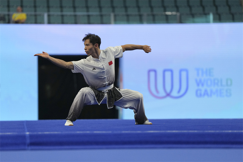 8月8日,中国选手高久尚在长拳比赛中。当日,2025年成都世运会男子长拳-刀术-棍术决赛在成都举行。新华社记者 胥冰洁 摄