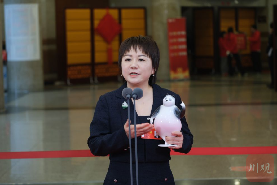 “大熊猫、三星堆、巴蜀非遗等都是‘顶级王炸’,用科技为文化IP注入强大生命力,能实现从‘符号出海’到‘价值出海’的跨越。”2月5日,省政协委员、成都大学中国—东盟艺术学院美术与设计学院院长张鸶鸶,带着一只特别的大熊猫玩偶,走上了四川省政协十三届四次会议第二场“委员通道”。
