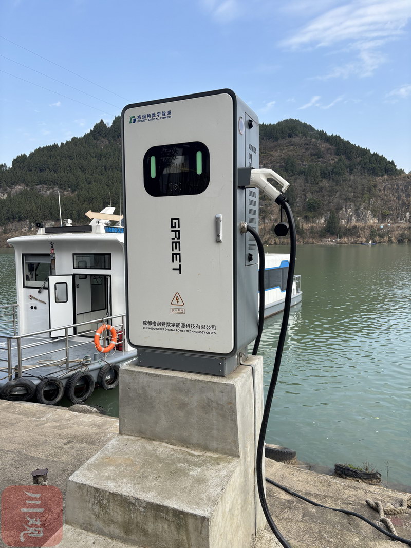 此外,岸边还配套建成14套“岸电”设施,渡船靠岸即可充电。无需额外柴油补给,嘉陵江南部段沿岸,从此告别柴油渡船“黑烟滚滚、油污飘洒”的景象。
