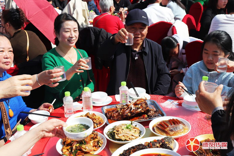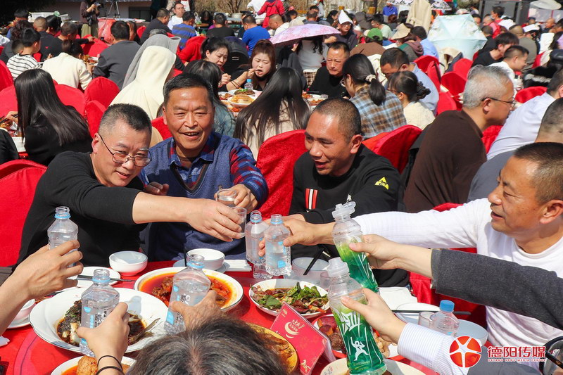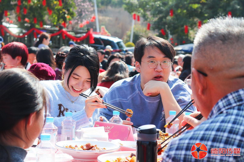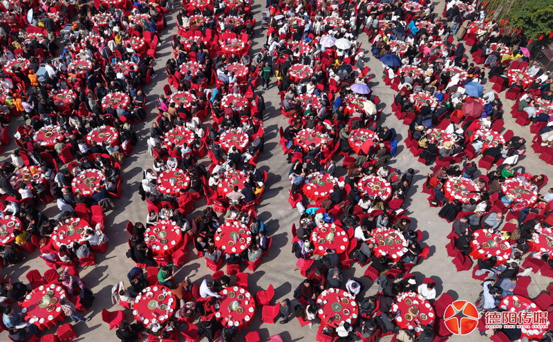 主会场红堰广场与分会场九大碗广场中央,共166张圆桌整齐排布,现场超2000名食客围桌相聚,他们中有村民,也有来自成都、重庆等地的游客,欢声笑语中,共赴这场充满年味与期盼的约会。