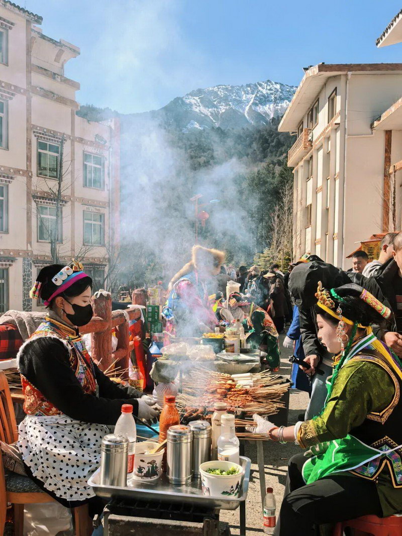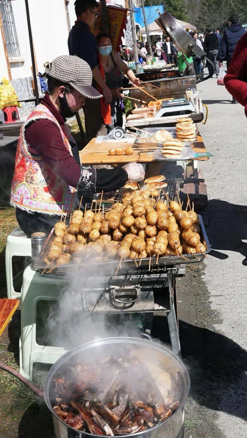 为了让游客玩得更尽兴、吃得更地道,从2023年开始,硗碛藏族乡人民政府在上九节当天特意规划一条“小吃街”,且摊位全免费!这样一来,游客逛着方便,村民也多了一份节日收入。