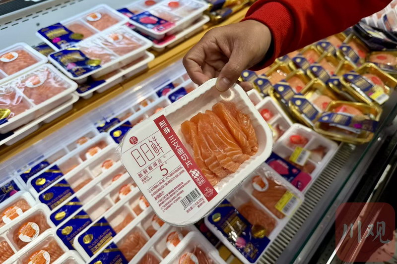 进口三文鱼产品由挪威渔场出发,最快72小时可达宜宾店内。赵泽宇 摄