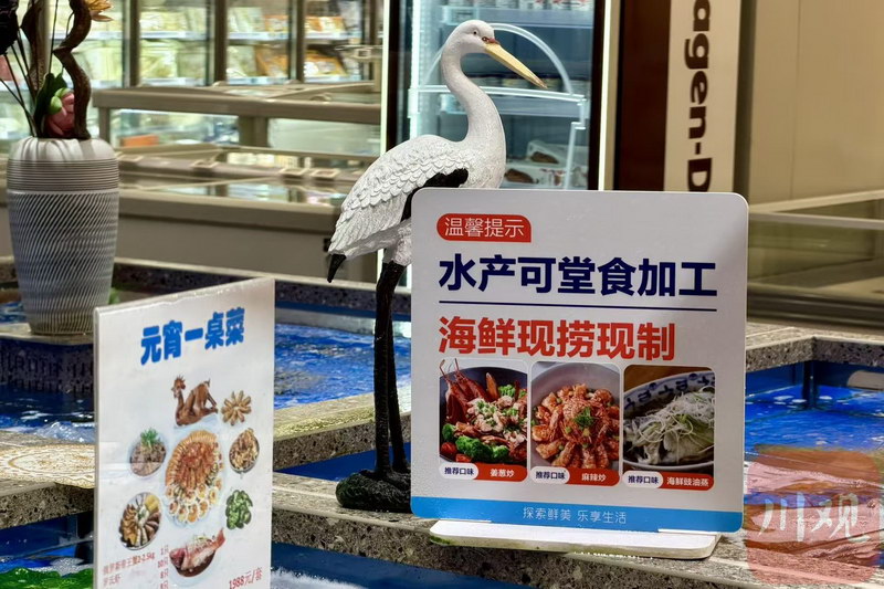 群主胡丁铭是店里的海鲜主厨。他向记者介绍:“宜宾人对海鲜有一种别样的热情,像产自俄罗斯的帝王蟹、挪威的三文鱼等,都是爆款。预计元宵节当天,也会和春节一样一天卖出上百只。”