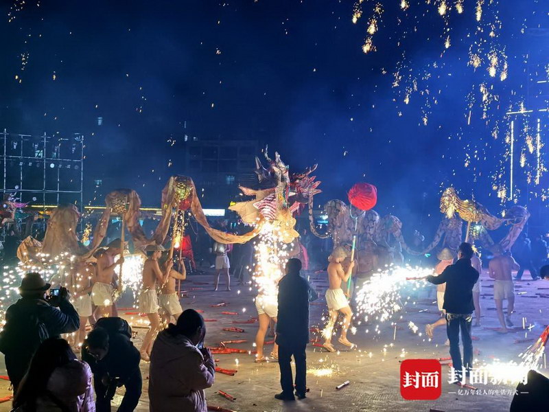 新春走基层|铁花火龙闹新春!四川达州石桥古镇这项非遗连“燃”三夜
