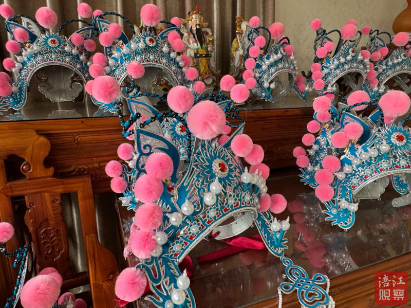 说话间,他拿起一顶已经做好的蝴蝶盔,轻轻戴在头上,左右晃了晃,盔头纹丝不动,流苏随着动作轻轻摆动。“你看,这样舞起来才有味道,既英气,又不压人。”