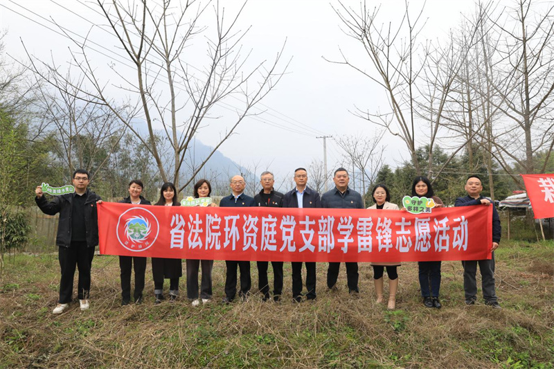 为深入学习贯彻习近平生态文明思想、习近平法治思想,牢固树立和践行正确政绩观,推动党建与环境资源审判业务深度融合、同向发力、同频共振,3月12日,省法院环资庭党支部联合成铁中院成都环境资源法庭党支部、成铁二院四川大熊猫国家公园生态法庭党支部,以“党建引领筑牢生态屏障 司法护航共建绿色家园”为主题,在大邑县开展联合主题党日活动,以实际行动践行司法护绿使命,为筑牢长江黄河上游生态安全屏障凝聚司法合力。省法院环资庭全体党员干警参加活动。