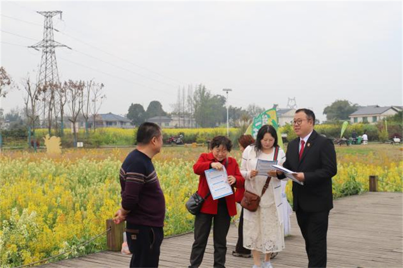 在这片充满希望的土地上,一场特殊的“春游”正在悄然进行。为认真落实省委社会工作部《关于开展2026年“学雷锋志愿服务月”活动的通知》要求,3月11日,省法院刑一庭联合丹棱县人民法院,将“学雷锋志愿服务月”普法宣传活动,放在了这片花香四溢的田野里。