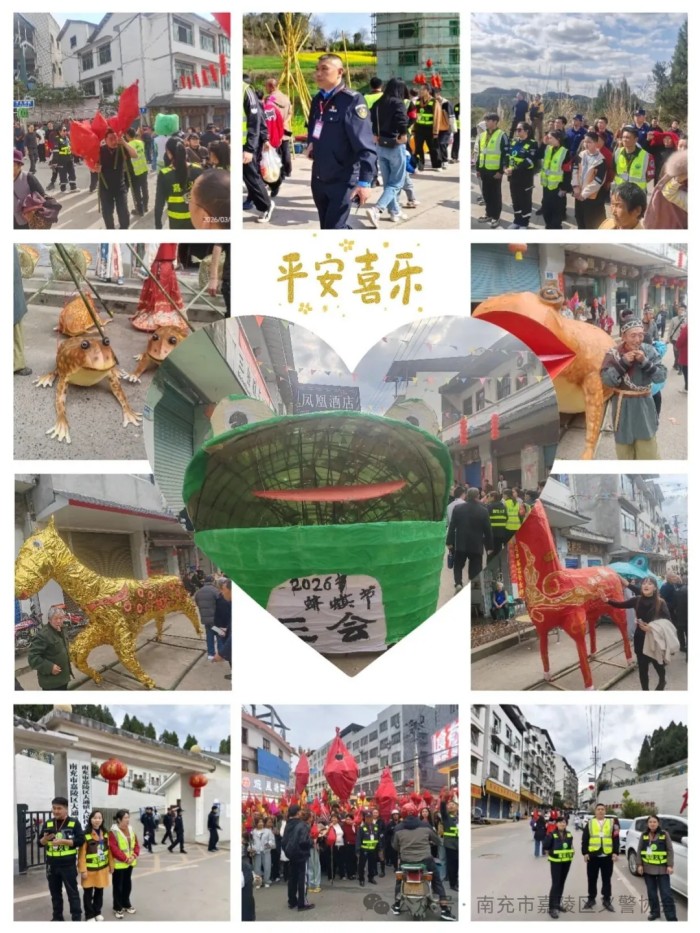 为确保这场万人盛会安全有序进行,嘉陵区公安分局、交警大队、嘉陵义警联合乡镇干部及城管执法人员,提前部署、全警动员,构建起一张严密的安全防护网。从下午开始,执勤人员便陆续抵达三会镇、金宝镇、七宝寺镇、龙蟠镇、大通镇等核心活动现场,各司其职,协同作战。