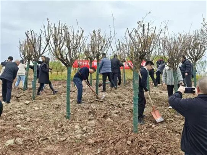 植树现场,一派热火朝天的劳动景象。志愿者们分工协作、默契配合,“三挖、两埋、一提土”,将一株株树苗稳稳栽进土里,也把绿色的希望播种在了春天。
