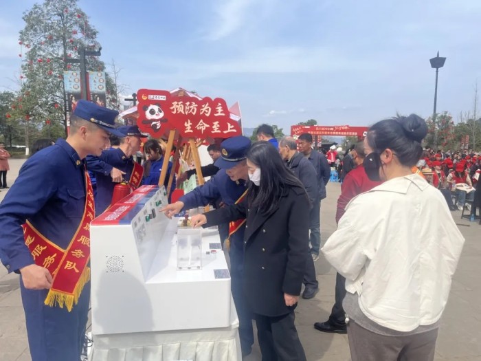 广元支队在昭化古城景区设置消防咨询台、器材体验区和有奖问答环节,普及防火知识;旺苍县消防救援大队则在电影院“摆摊”发放资料,现场教学灭火器使用,让消防安全融入日常生活。