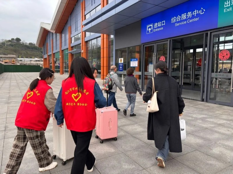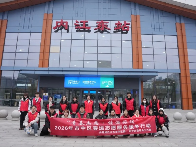 共青团市中区委在内江东站开展2026年内江市市中区“青春志愿·情满旅途”春运志愿服务暖冬行动,活动共20余名青年志愿者参与,对来往旅客开展引导咨询、秩序维护、重点帮扶、便民利民等志愿服务。用真情服务群众,传承雷锋精神,用青春行动营造平安出行、温暖同行的良好社会氛围。