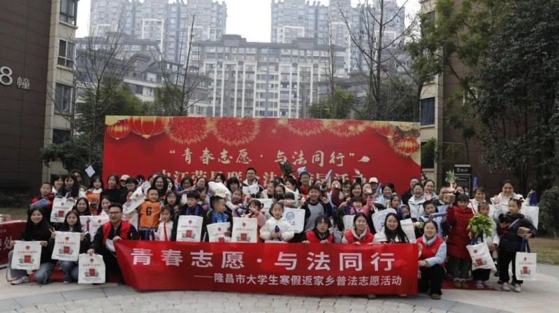 隆昌市团市委联合相关单位开展“青春志愿·与法同行”大学生返家乡普法志愿服务活动。活动共组织15名大学生志愿者参与,为50组家庭及300名群众开展了法治游园、知识闯关、情景模拟等沉浸式体验环节,将普法教育融入趣味互动。活动创新采用“专业指导+志愿服务+家庭参与”模式,有效延伸了法治教育覆盖面,弘扬了志愿服务精神。
