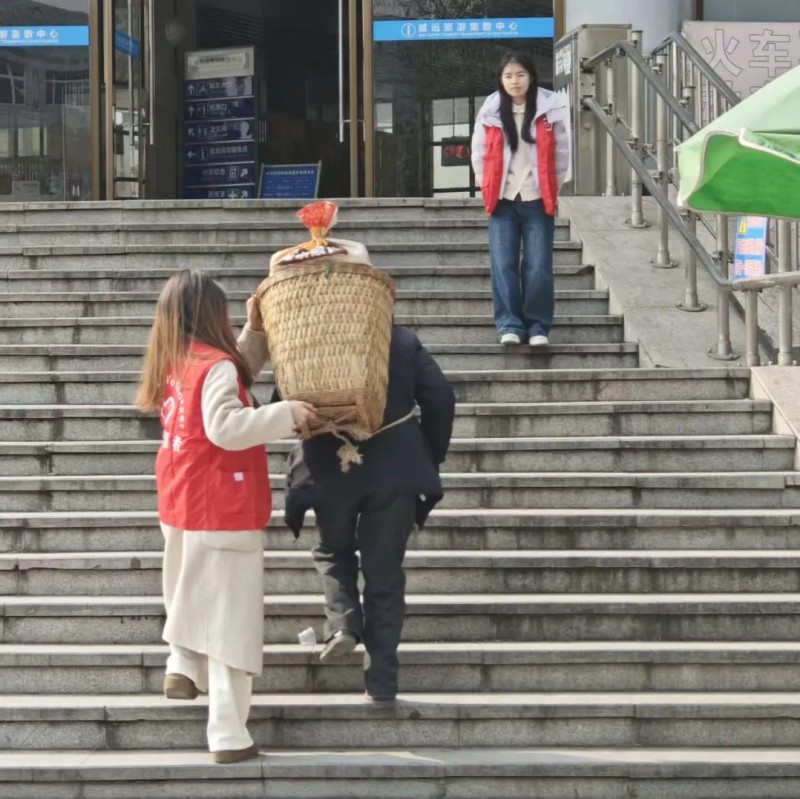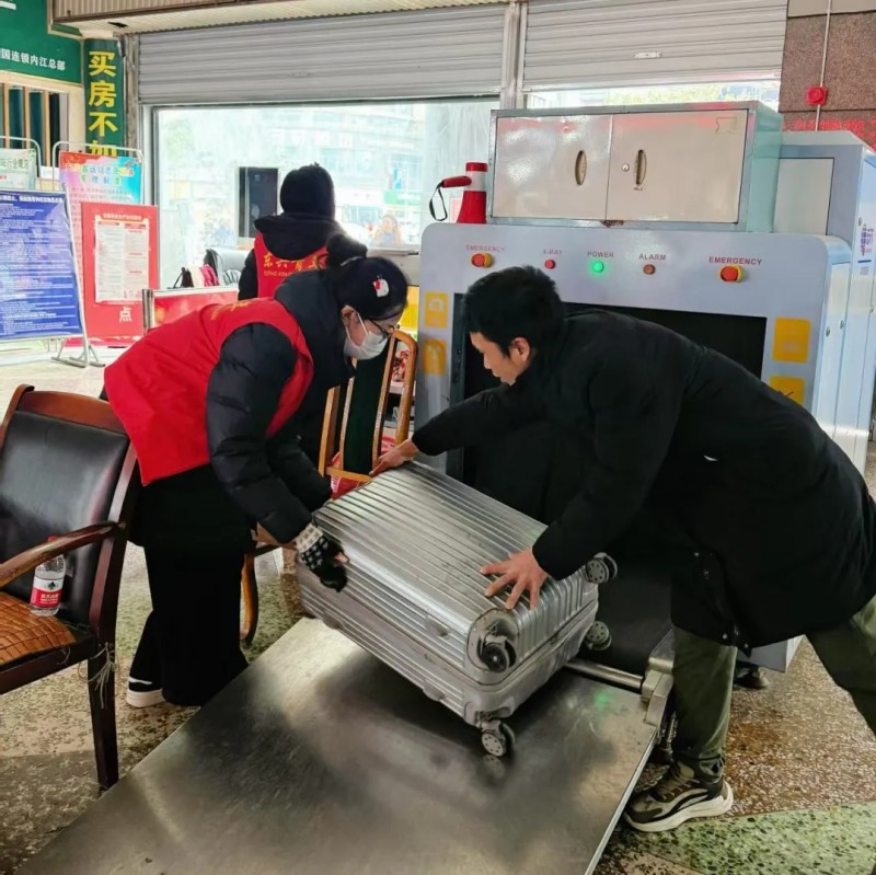 共青团威远县委在威远县高铁站、客运站开展“青春志愿·情满旅途”春运暖冬志愿服务活动。本次活动共20名青年志愿者参与,青年志愿者们热情地为来往旅客提供行李搬运、指引服务、看管物品、秩序维护等,用实际行动温暖旅客的回家路,用真诚的服务驱散冬日寒意,让“奉献、友爱、互助、进步”的志愿精神在春运一线熠熠生辉。
