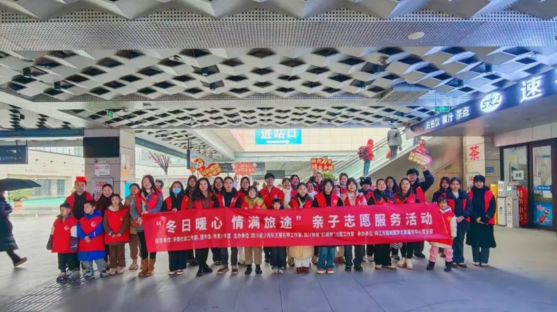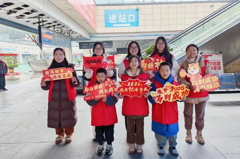 内江市甜城圆梦志愿服务中心在内江北站开展“爱在旅途・冬日暖心 情满旅途”亲子志愿服务活动。本次活动以“我眼里的‘回家’” 为主题,组织中小学生、家长及大学生等40余名志愿者参与,打造集志愿服务、镜头创作、亲子陪伴、青春担当于一体的沉浸式实践课堂。志愿者们用心服务出行旅客,以实际行动弘扬雷锋精神,展现新时代青年志愿风采。