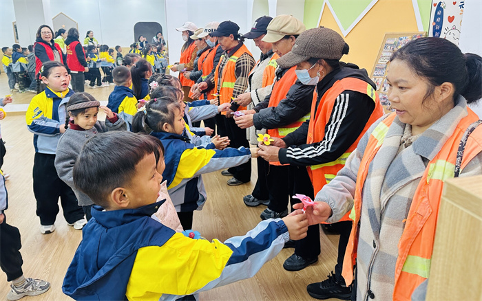 随后,依托“温馨社区”项目,孩子们走进自然,感知节气更替,并在手工课堂上亲手制作鲜花,致敬环卫工人等一线劳动者。最后,志愿者与孩子们还一同走进养老院,为老人们打扫卫生、整理床铺、陪伴聊天。“小手拉大手”的温情互动,让老人们感受到了社会的关爱和温暖。