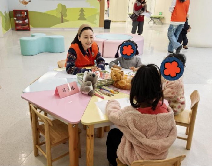 在儿科“快乐门诊”服务区域,冯家妹亲身体验了医务社工日常工作,与该院志愿者一同陪伴候诊患儿做游戏、画画,用趣味互动转移孩子对就诊的恐惧,同时耐心安抚家长的焦虑情绪。该院目前正在策划对志愿者队伍进行分层培训,通识培训合格后可承担陪诊、基础便民服务,专业培训通过后可参与情绪疏导、一对一陪伴等专项服务。