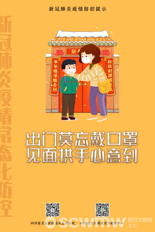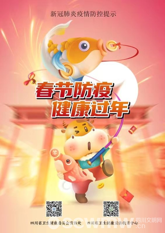 四川文明网成都讯(罗园)春节临近,在疫情防控要求下,今年春节应该怎么过?1月27日,四川省卫健委发布一组防疫海报,倡导健康过年。