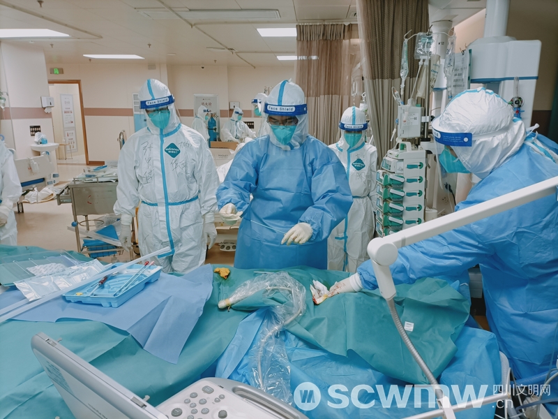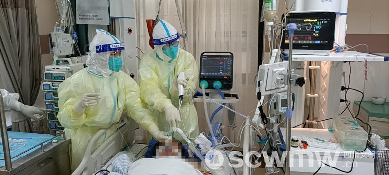 四川援河北医疗队在石家庄市人民医院重症病房救治患者。(图片由华西医院提供)