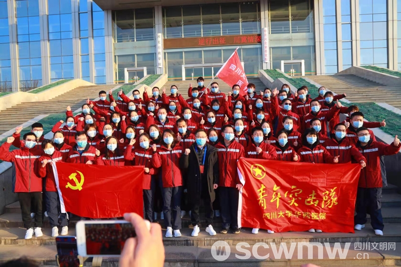 1月18日凌晨,华西医院61名医护人员出征。(图片由华西医院提供)