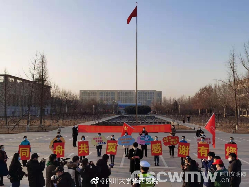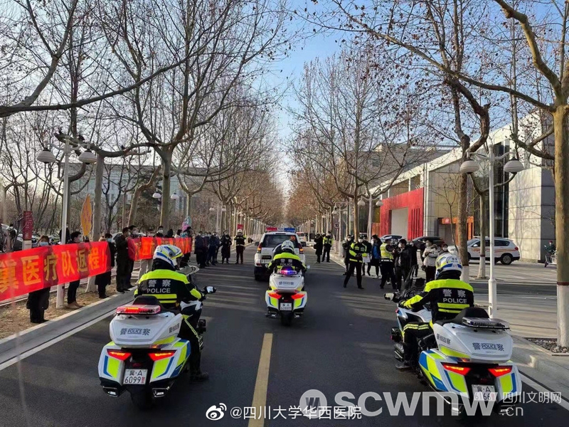半个月的共同抗疫经历,让医疗队与当地医务人员结下了深刻的友谊。临别之际,石家庄市人民医院医务人员在医疗队驻地献上舞蹈《感谢》,并宣读感谢信。当地交警以最高礼仪送别华西医疗队,沿途市民夹道相送。