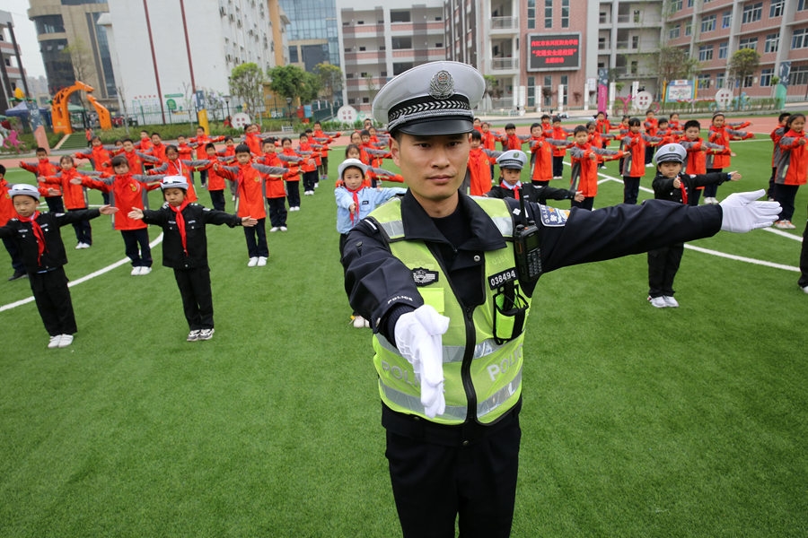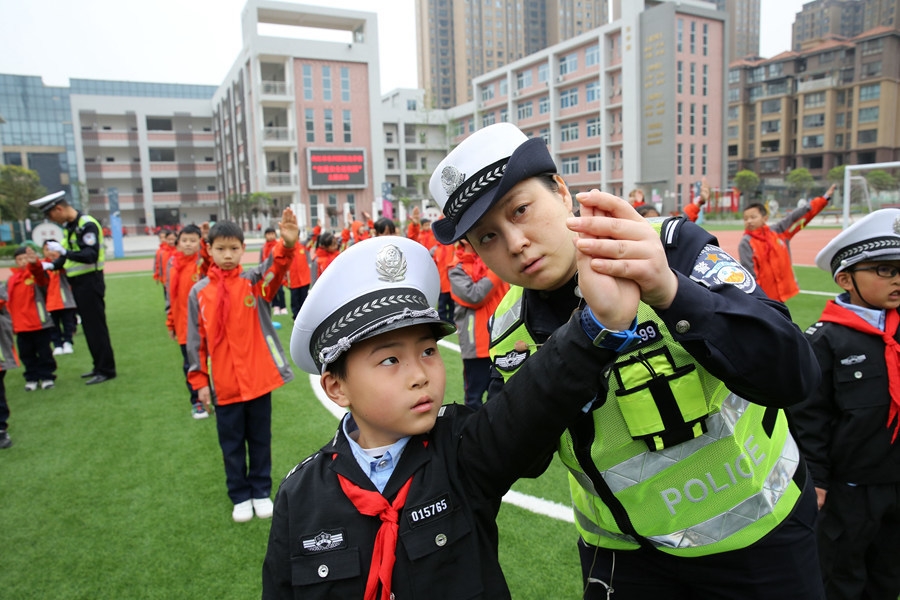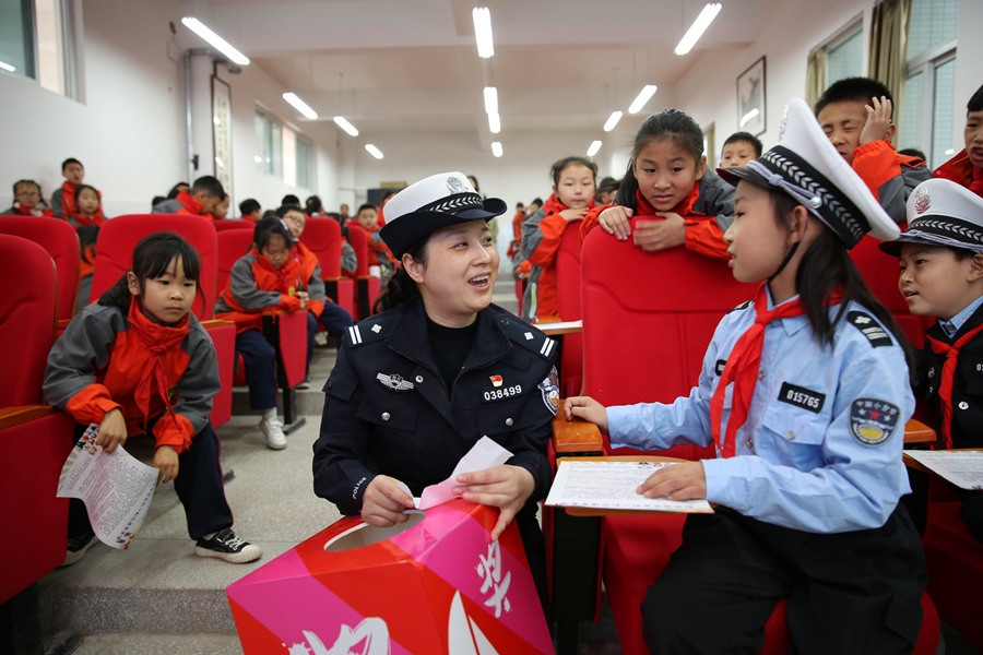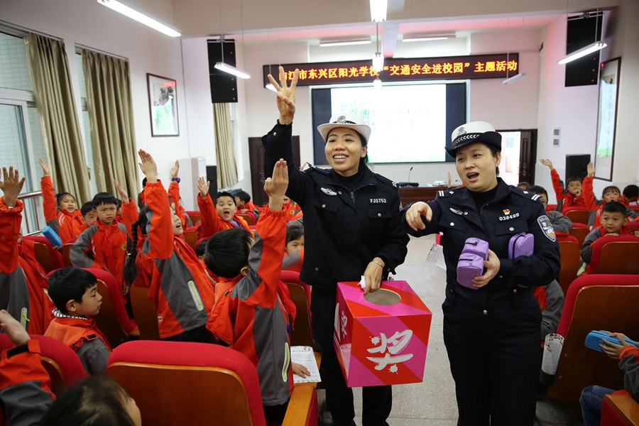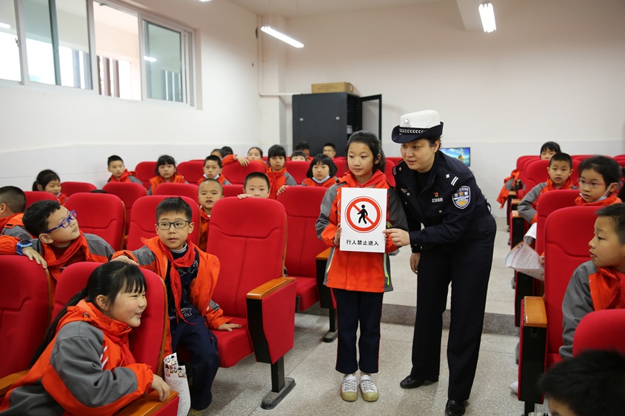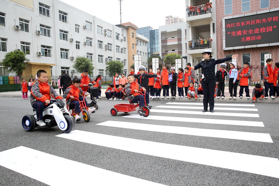 当日,为迎接全国中小学生安全教育日,四川省内江市东兴区阳光学校开展“交通安全进校园”主题教育活动,邀请市交警支队直属二大队民警对学生进行内容丰富、形式多样的交通安全教育,让学生们了解和掌握交通安全知识,从小养成遵守交通规则的良好习惯。(视觉四川 兰自涛 摄)