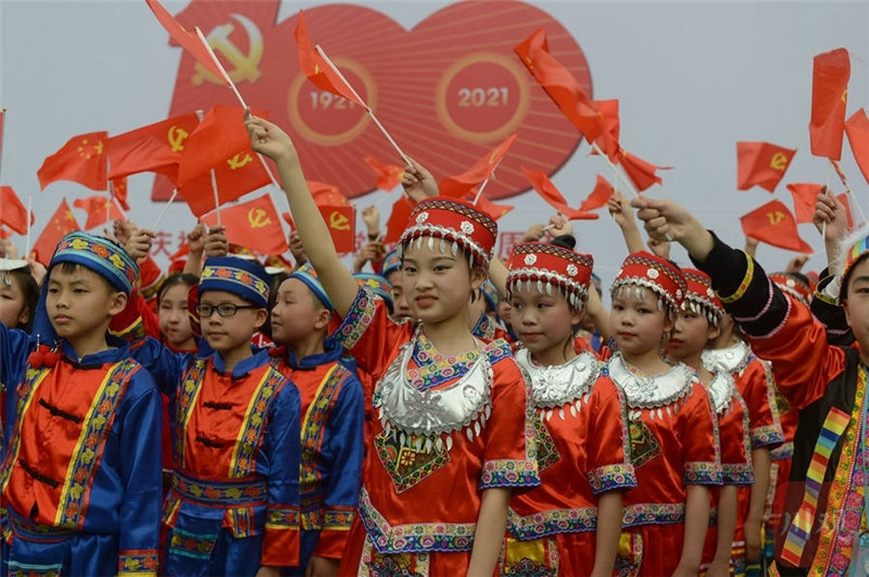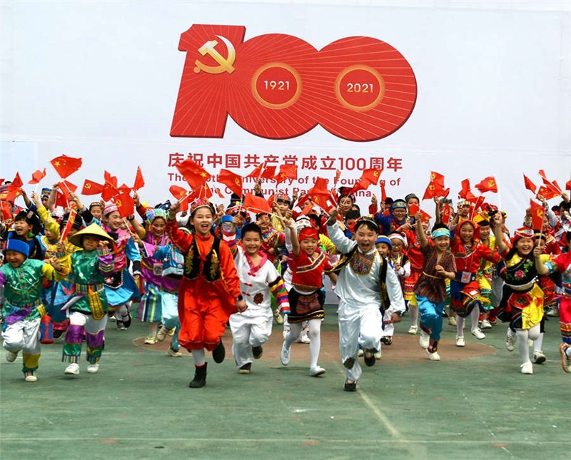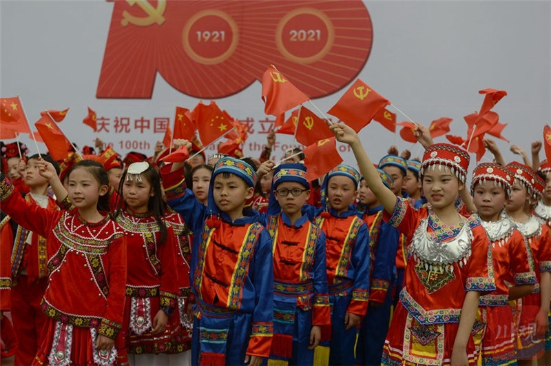 连日来,结合党史学习教育活动,蓬安县各中小学校广泛开展“童心向党”主题教育活动,通过识党旗、学党史、唱党歌、知党恩,让孩子们进一步了解党的光辉历程。(视觉四川 周亮 摄)