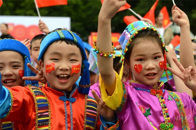 南充市蓬安县实验小学的小学生参加“童心向党”主题活动。