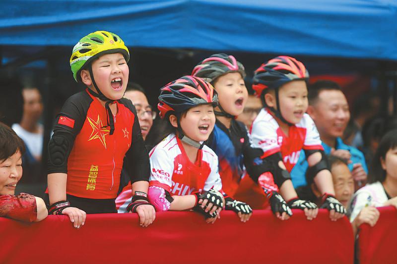 5月4日,“小米高飞”2021全国青少年轮滑巡回赛(自贡站)火热开赛,参赛选手们为同伴呐喊助威,在体育竞技中享受美好假期时光。