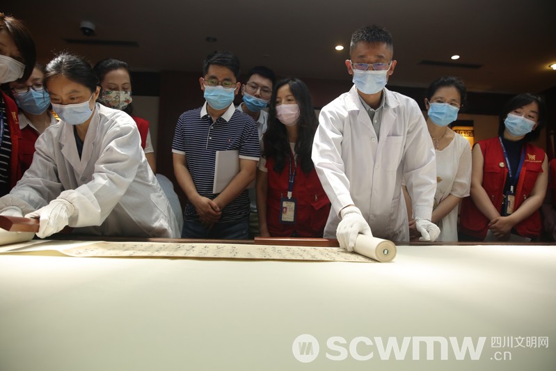 四川博物院作为活动主会场,在当天推出馆藏书法精品鉴赏、文保中心开放日、策展人见面日、“学党史、守初心、跟党走”流动博物馆革命文物展等线下活动,并将开放时间延时至夜间八点,方便市民游客到场参观。当天,四川博物院还向到场观众免费发放了1000份文博读物、宣传册页和文物光盘。