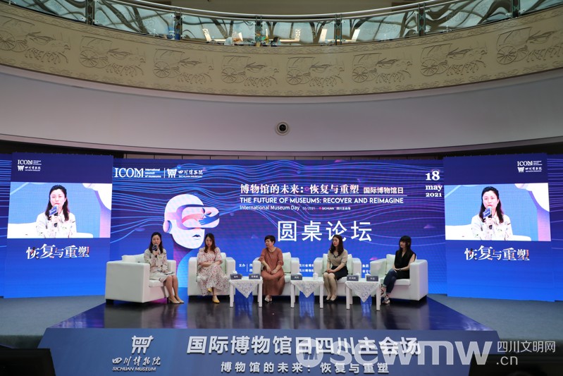 在下午举行的主题论坛上,四川省文物考古研究院三星堆遗址工作站站长雷雨、四川博物院副院长谢丹分别就《再醒惊天下·三星堆遗址祭祀区的考古新发现》《穿越千年 再现文明辉煌——考古成果在博物馆的呈现与传播》作了主旨演讲,在向公众解密三星堆最新考古发现内容的同时,科普博物馆在文物保护、研究、展示、利用等方面所作的工作。在“恢复与重建”主题论坛上,来自泡桐树小学西区分校、成都大熊猫繁育研究基地、四川大学华西医院和熊猫邮局的嘉宾,从教育、通信、医疗、景区等不同角度就后疫情时代博物馆如何充分发挥好社会价值进行了讨论。