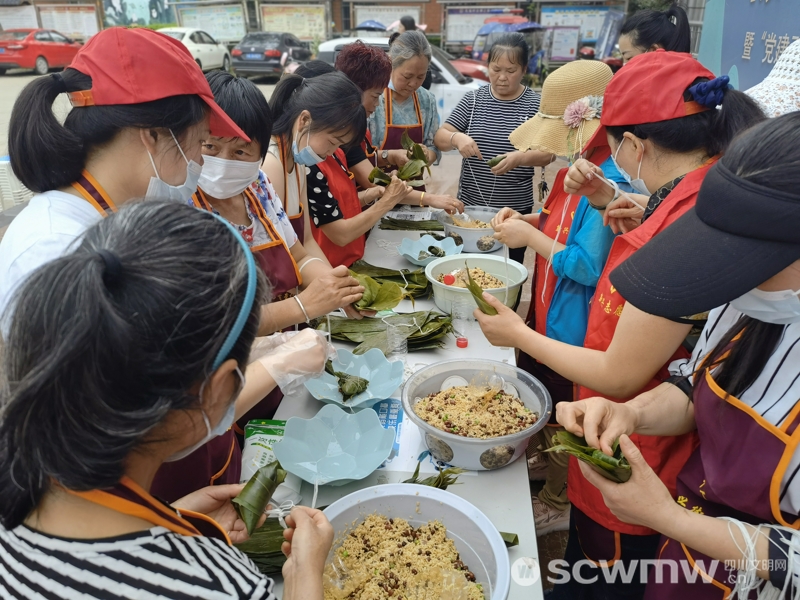 粽叶飘香,社区居民开展包粽子比赛。大家一边竞赛,一边分享着包粽子的经验,有说有笑,其乐融融。