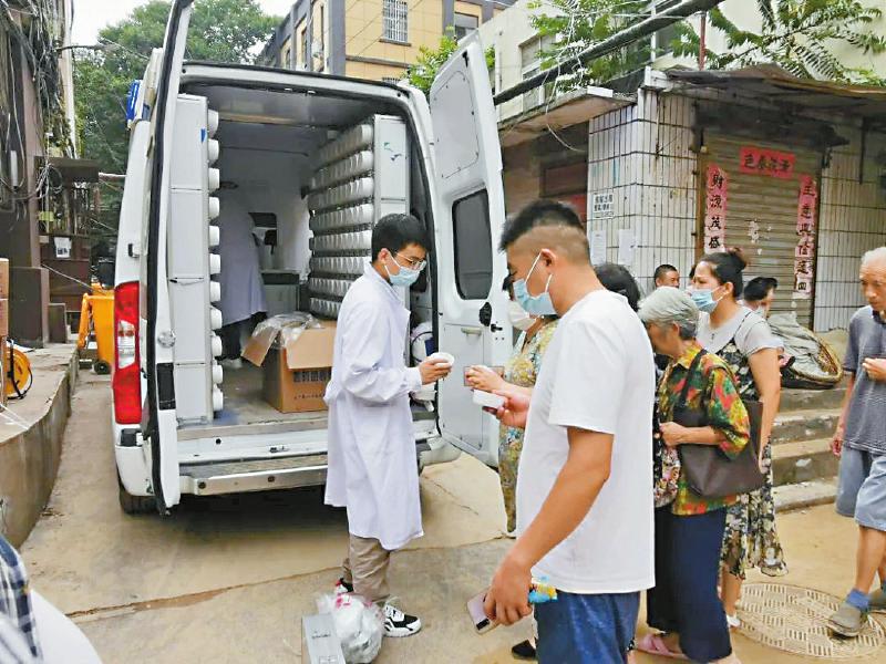 7月22日,来自四川的“流动应急智能中药房”在郑州市河医社区免费为群众发放药品。