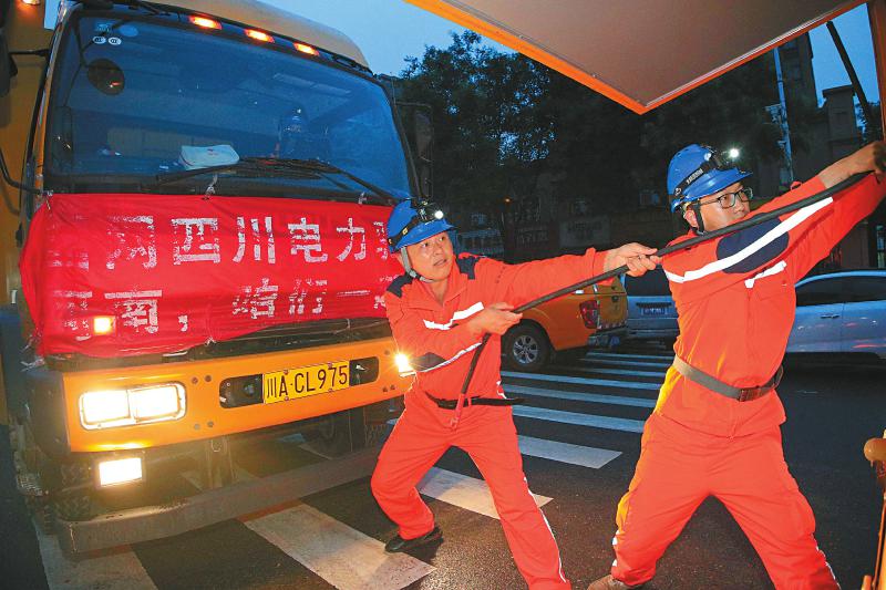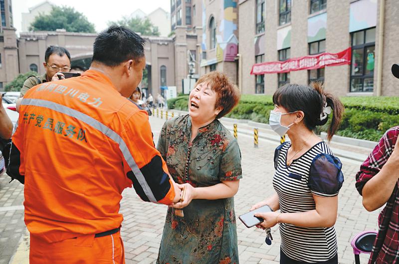 23日凌晨4时30分,记者随国网四川电力5台应急发电车进入郑州最大受灾小区——橡树玫瑰城小区应急保电。30多名抢险人员顾不上休整,立即查勘地势,放电缆,接配电箱……7时,这个有6700户居民、已经停电67小时的超大小区终于来电了。应急电源的接通,帮助小区居民解决了高层电梯出行以及取水不便的迫切问题。抢险队携带的充电方舱还为小区居民的手机带来了“巨型充电宝”。