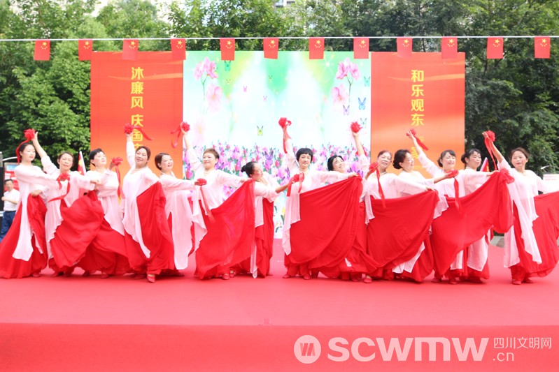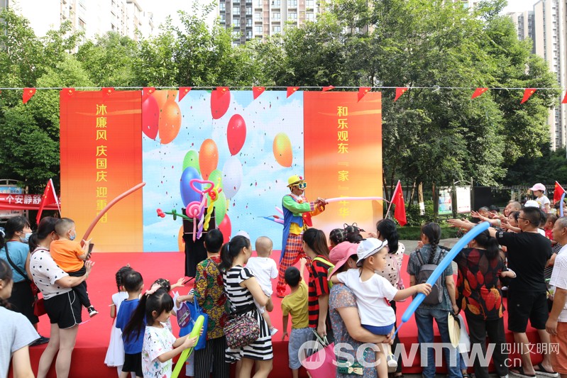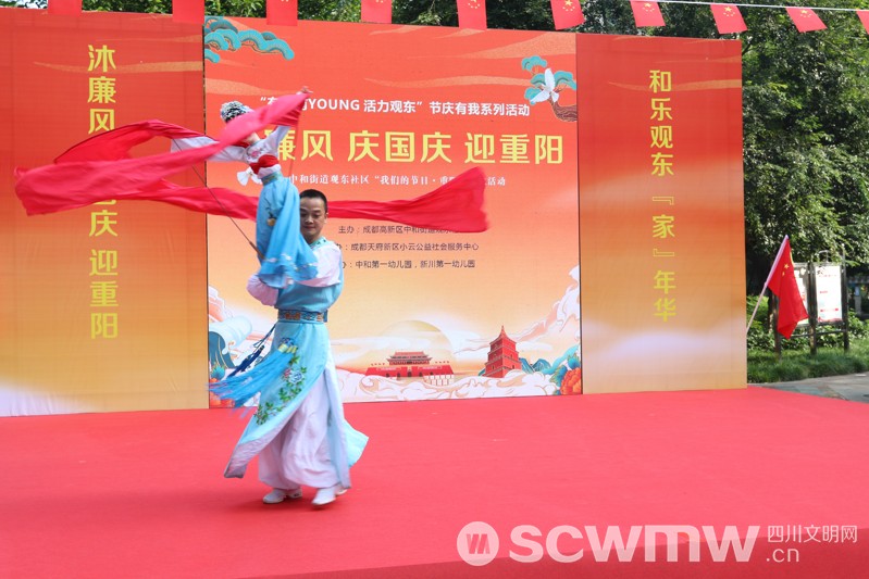 四川文明网成都讯(罗园)非遗文化川剧木偶、神奇的魔术表演、社区达人歌舞表演,琴棋书画各显技艺……9月30日上午,成都市高新区新怡花园广场热闹非凡,“沐廉风 庆国庆 迎重阳”社区文艺表演暨首届“和乐观东文化节”游园活动在这里精彩上演。