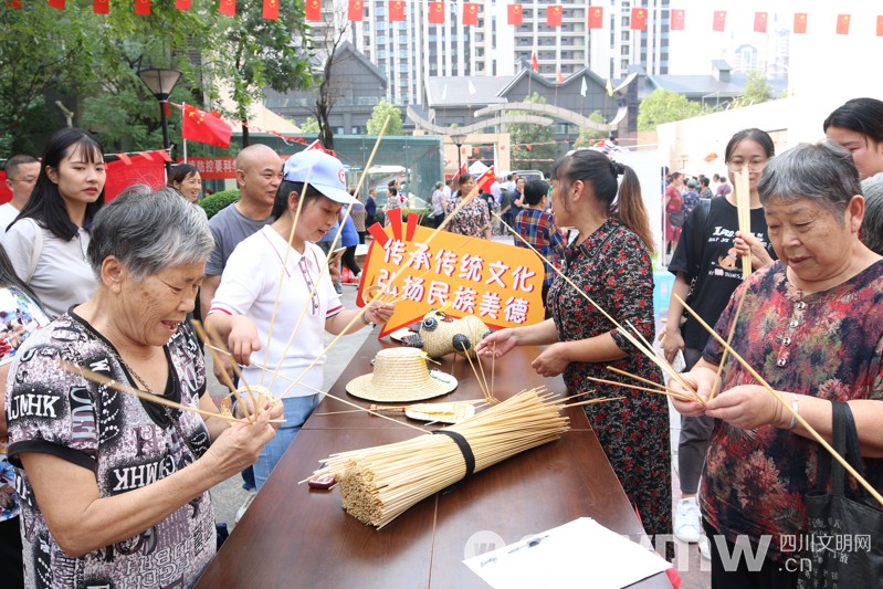 除了精彩的文艺演出,在“和乐观东文化节”游园活动中,志愿者为社区残疾、高龄群众进行了义剪;专业志愿者向居民普及心肺复苏术及安全应急急救技能;来自龙泉驿区柏合镇的草编非遗传承人现场展示并邀请居民体验草编非遗技艺;成都市十佳志愿者、安全应急专业教官与社区亲子家庭进行了“文明交通”的实景体验。