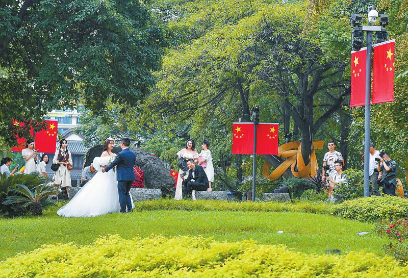 10月1日,成都多对新人特意把婚礼选在了国庆节当天,与祖国同庆。