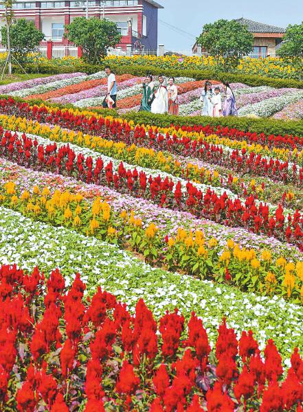 10月1日,广安市岳池县九龙街道银城花海,白庙镇郑家村等地百花竞放,吸引了许多市民和游客前往观花赏景、欢度国庆。