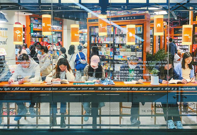 10月5日,成都市来福士广场内的一大型书店一座难求。