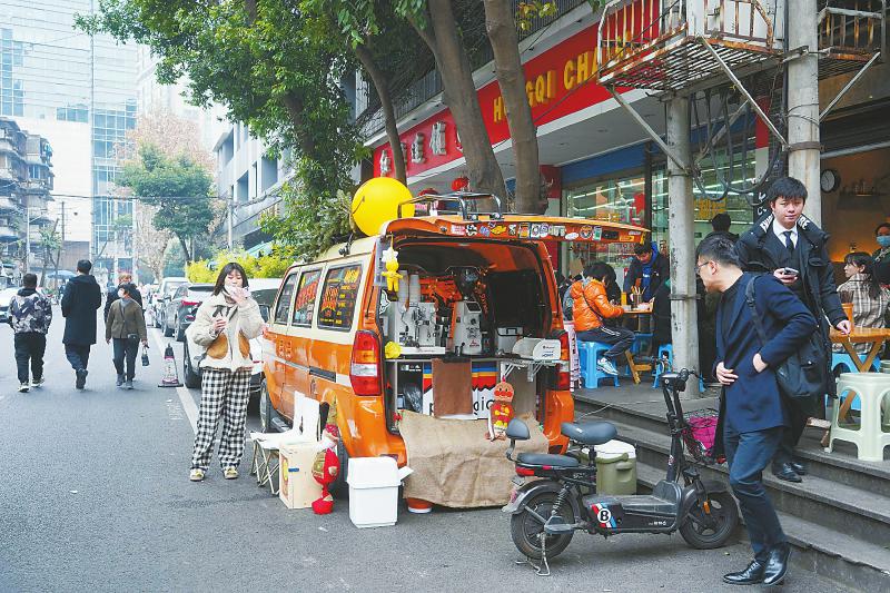 王派尔那辆翠绿色的“派尔王咖啡车”是成都曹家巷网红餐厅“明庭”路边停车场的常客,一停就是大半天。12月5日,她又把咖啡车停到了这里,打开后备厢,搬出小板凳,几分钟时间,飘着醇香的移动咖啡馆就开张了。“我就喜欢把咖啡车开到餐饮闹热点的地方,毕竟这些地方有美食,年轻人就多。”王派尔悄悄向记者透露了她经营的小秘密。