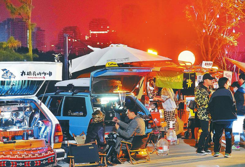 10月24日,几十台咖啡车齐聚成都天府大道麓湖生态园,形成体验式消费新场景。